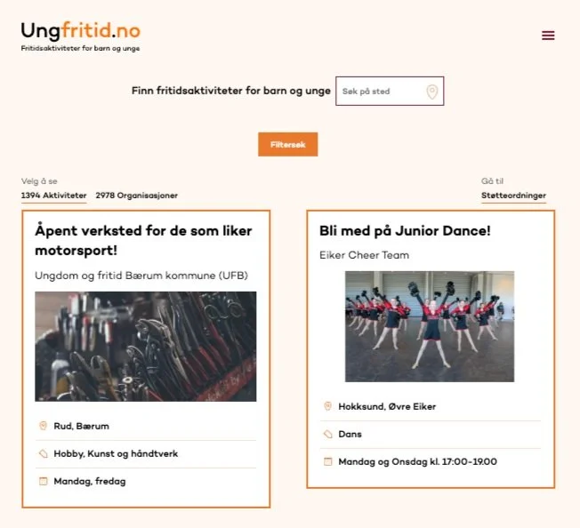Ungfritid.no er en nasjonal oversikt over fritidsaktiviteter for barn og unge fra 0-26 år.